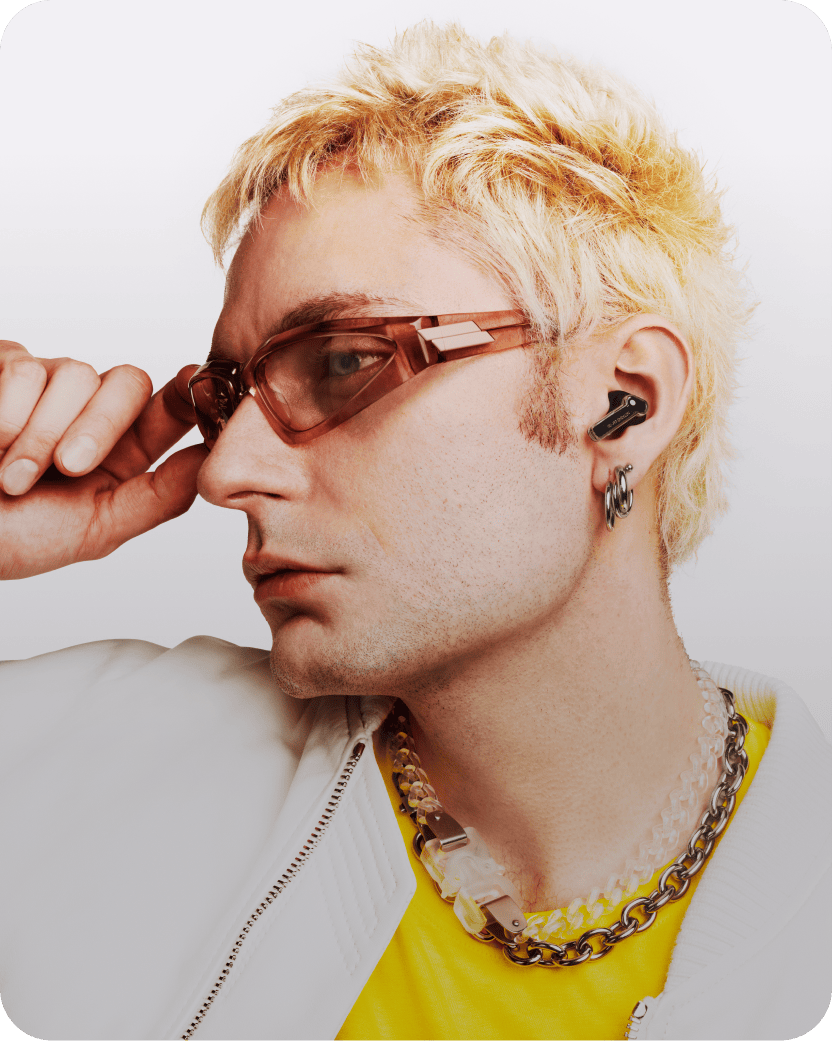 Ear (a) enhances low frequencies in your music in real-time, elevating bass-heavy sounds so that you can hear every detail.