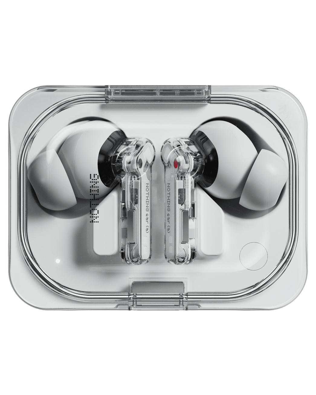 10. Charging and battery life test data was measured using Nothing Power (45W) at ambient temperature (25° C or 77° F) in Nothing labs. When the charging case is connected to a type-c cable with the earbuds inside, Ear (a) will fully charge from 0-100% in 90 minutes. Without plugging in the case, the earbuds will charge inside the charging case in 80 minutes.